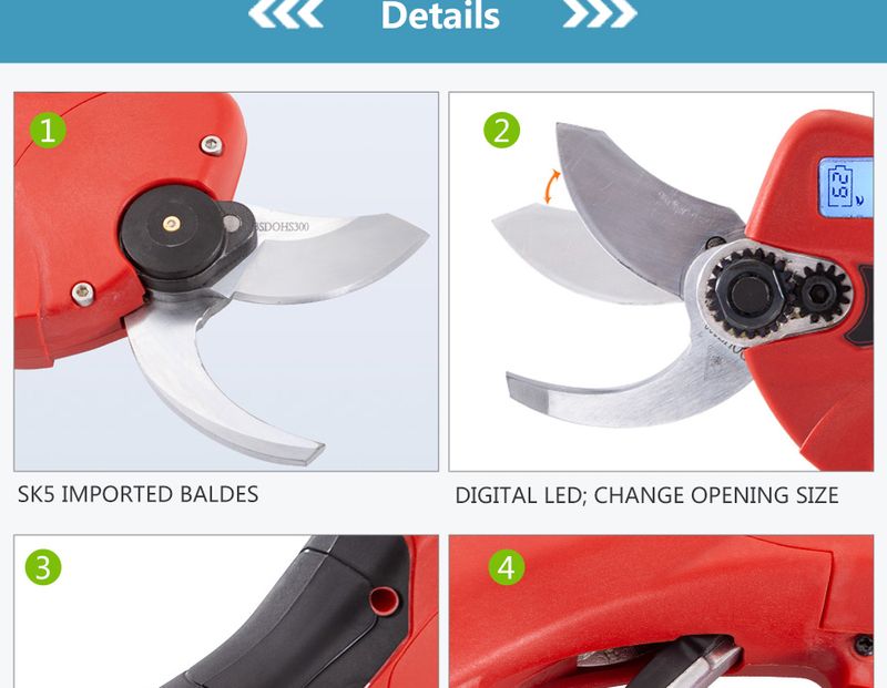 25.2V Electric Garden Pruner 40MM LED Scissors Cordless Electric Pruning Shears Branch Cutter Electric Fruit Pruning Tool