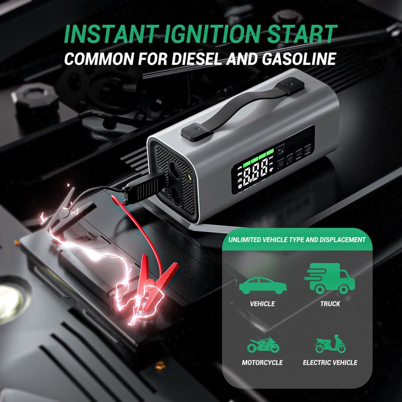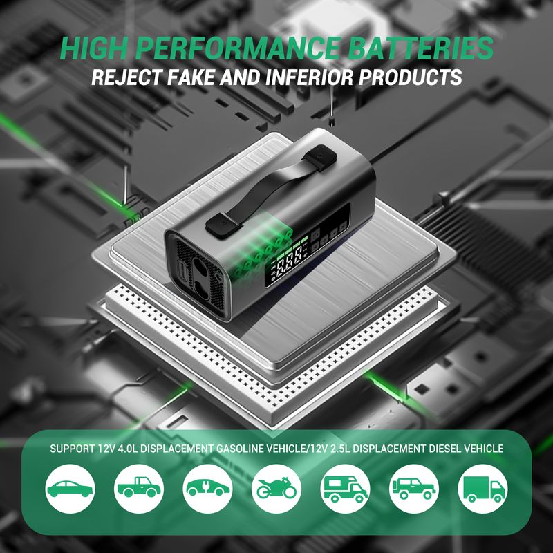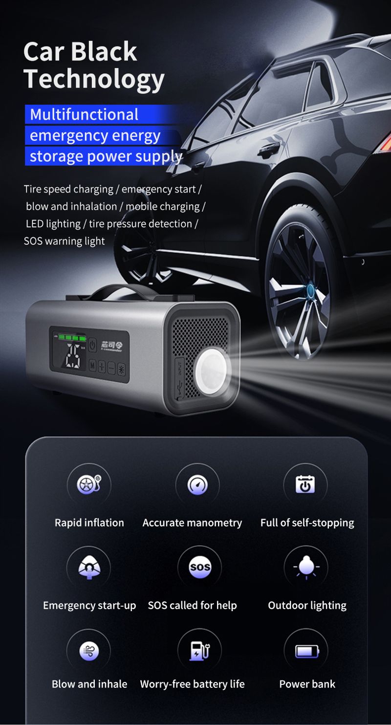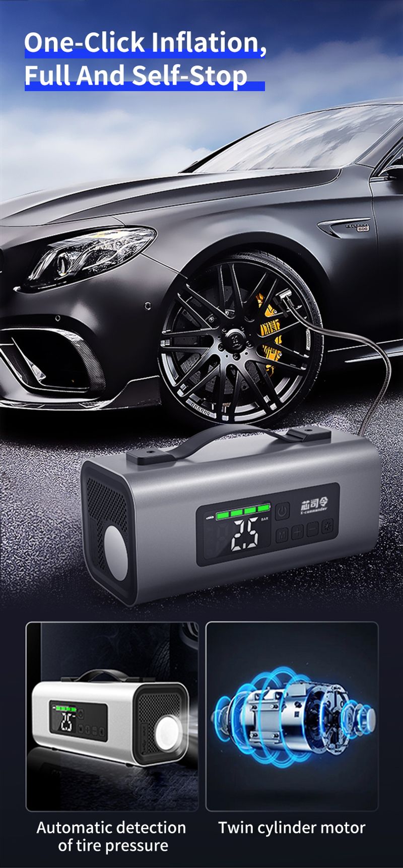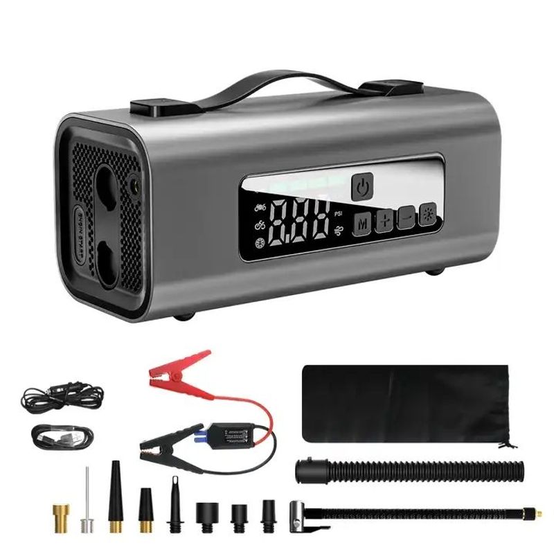 Car Jump Starter & 19 Cylinder Tire Inflation Pump 150PSI 12V Auto Pump Electric Tire Inflator