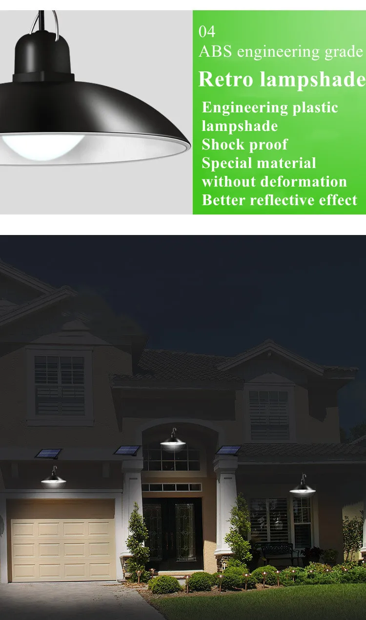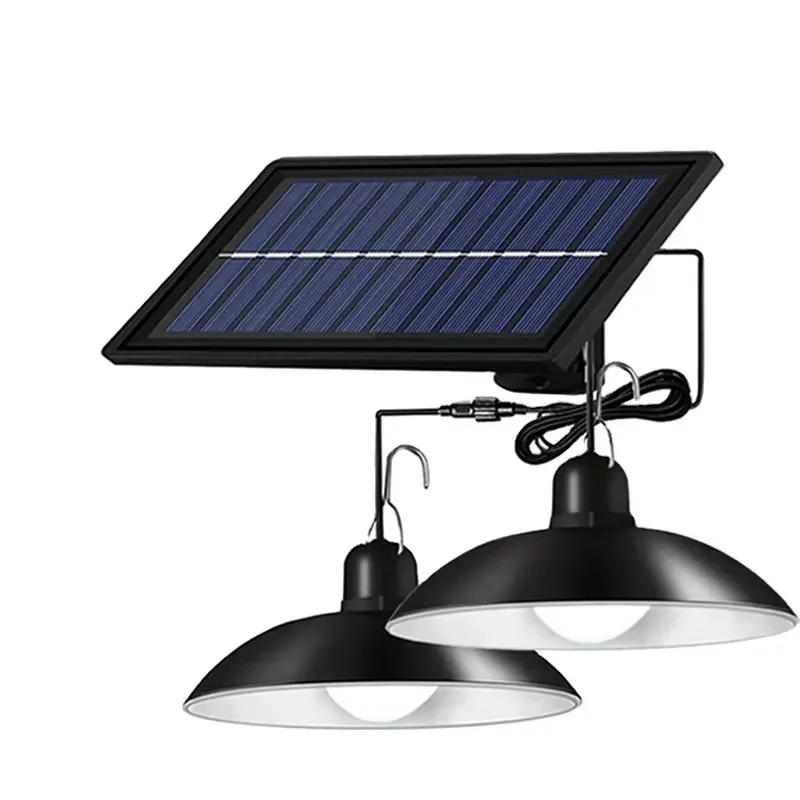 Double Head Retro Lamp Remote Control Hanging Solar Pendant Shed Lights Outdoor Warehouse Solar LED Flood Camping Lights