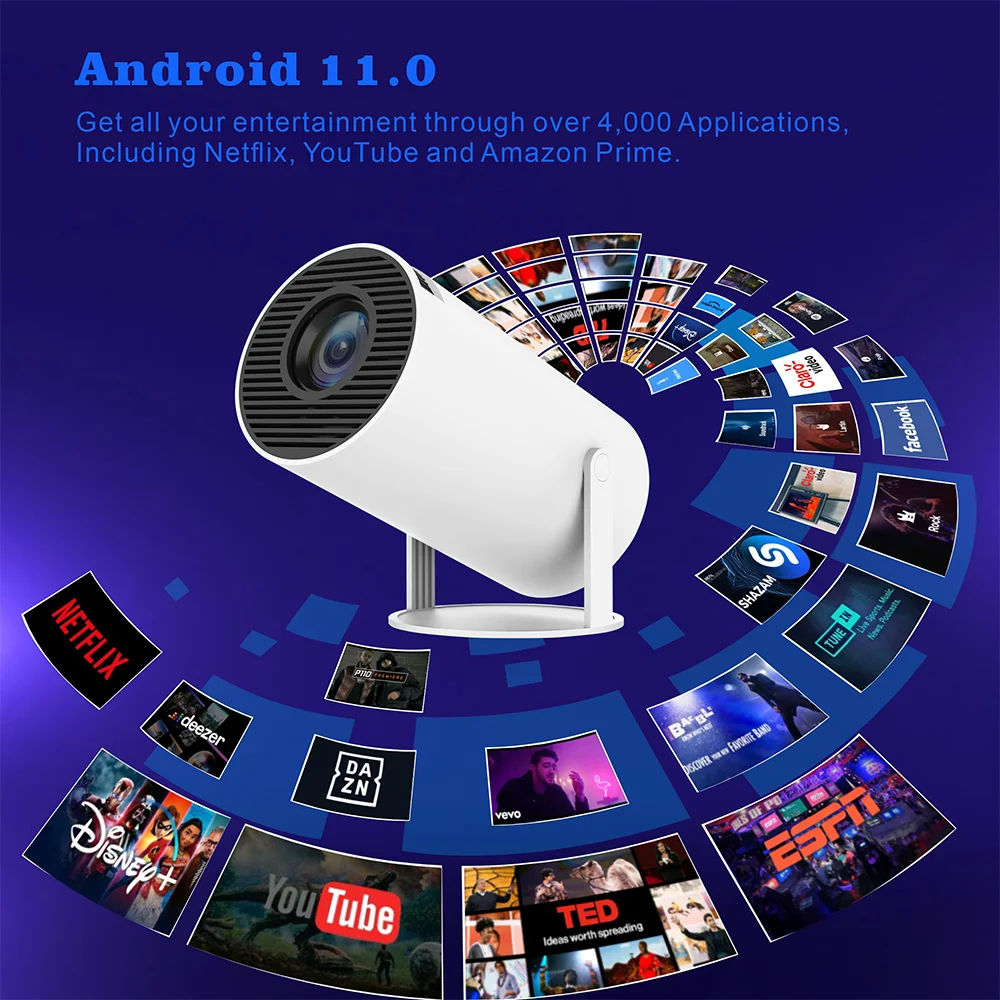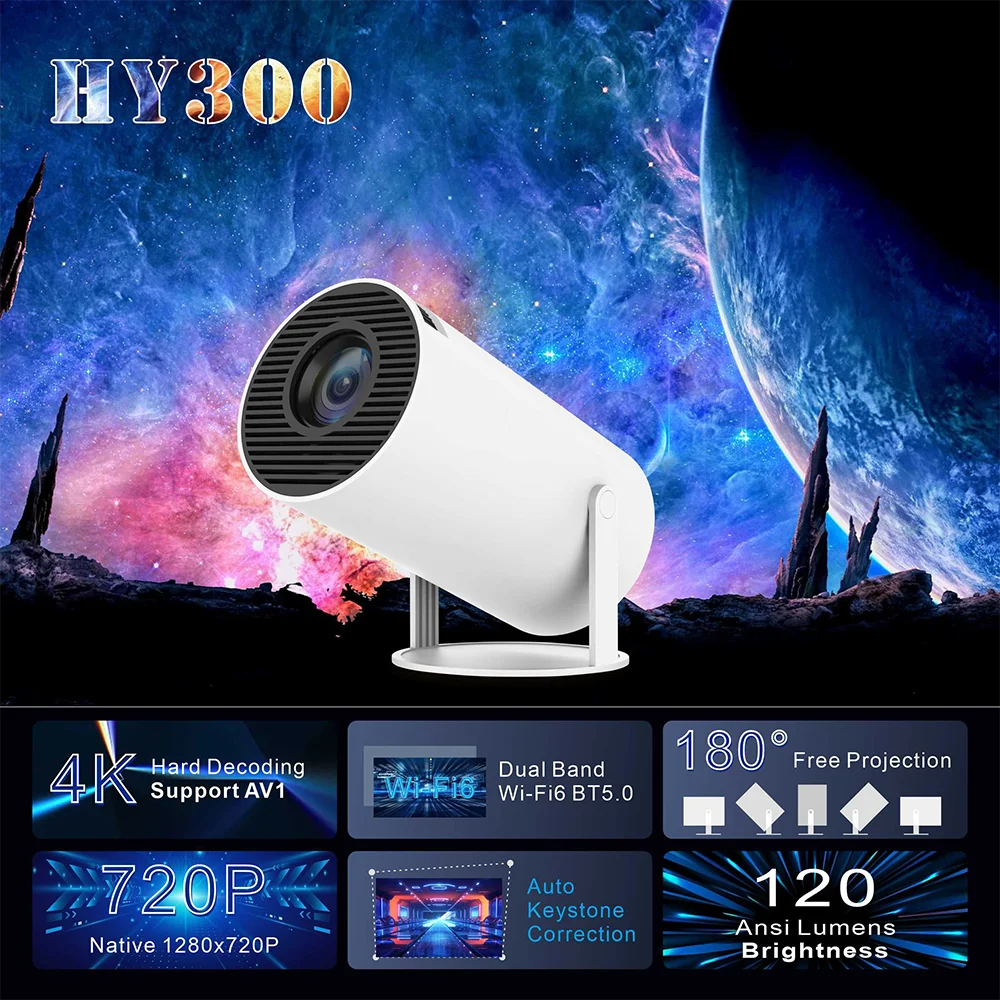 Factory Wholesale HY300 720P 1G+8G 120 lumens Android 11 wifi Outdoor 1080P 4K Mini Home Theater portable Projetor 4K