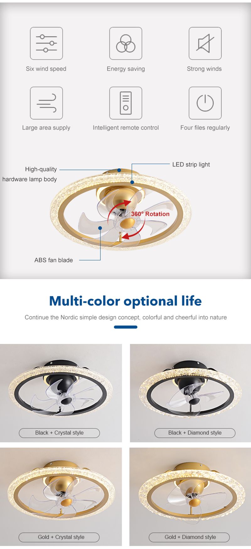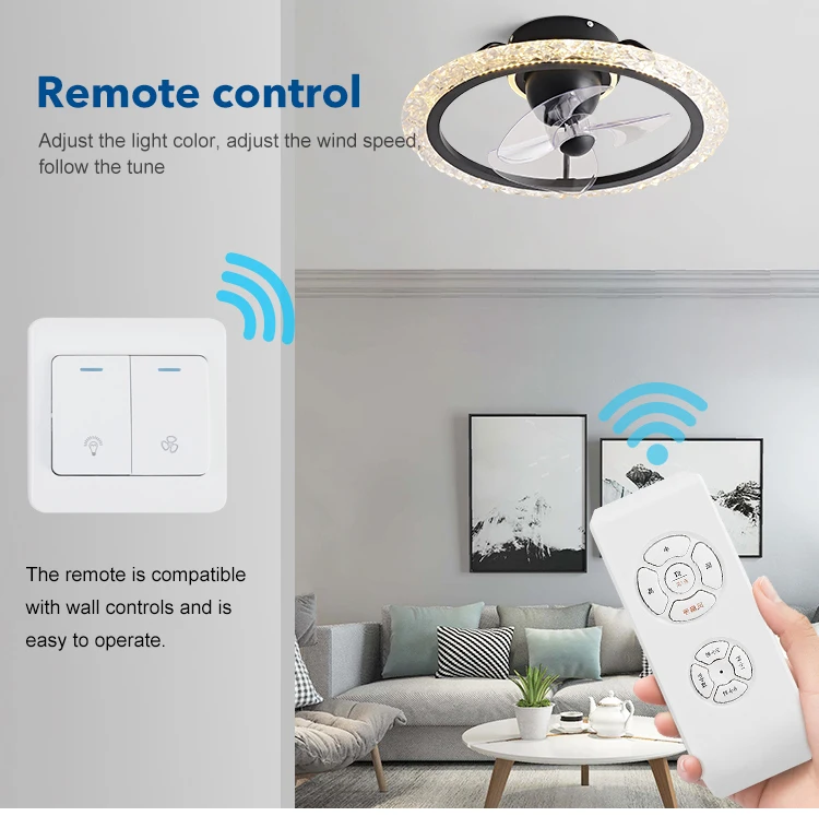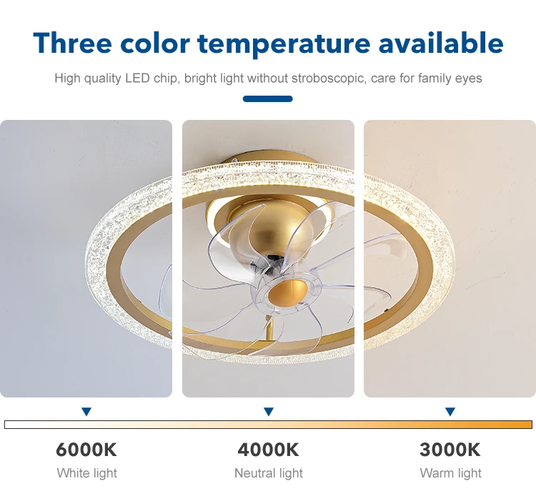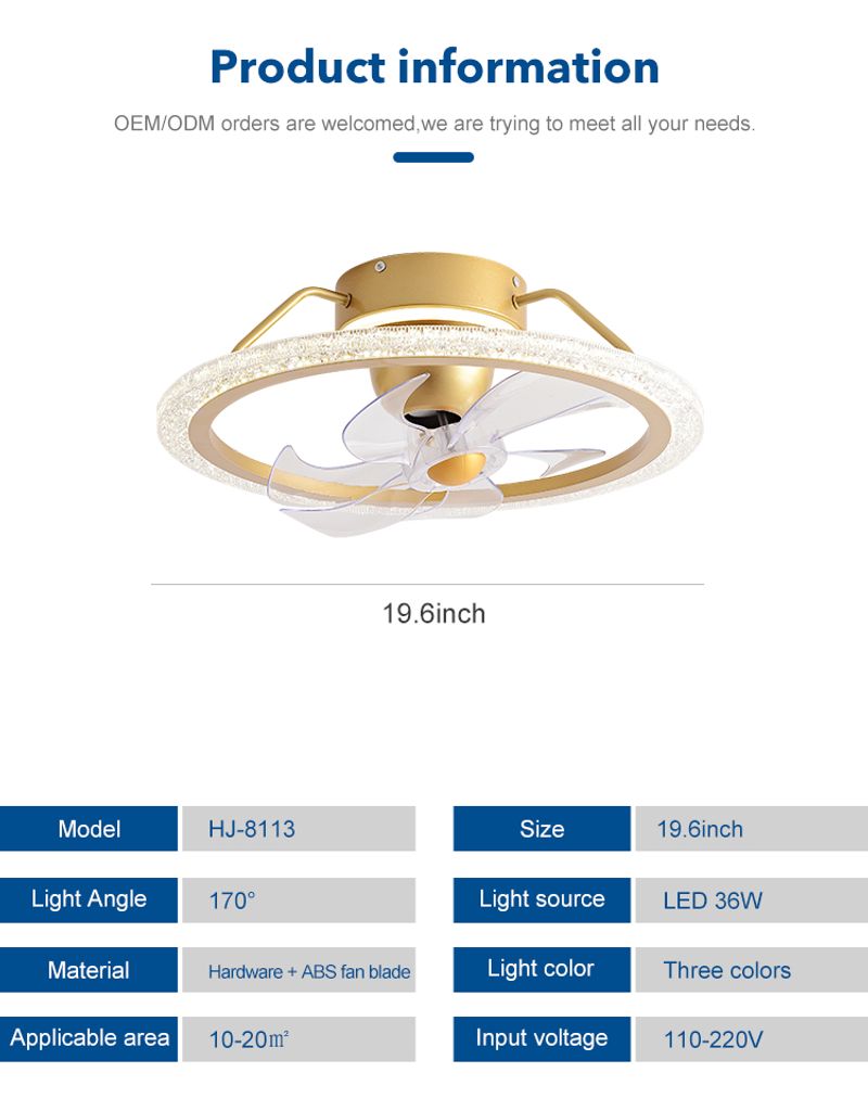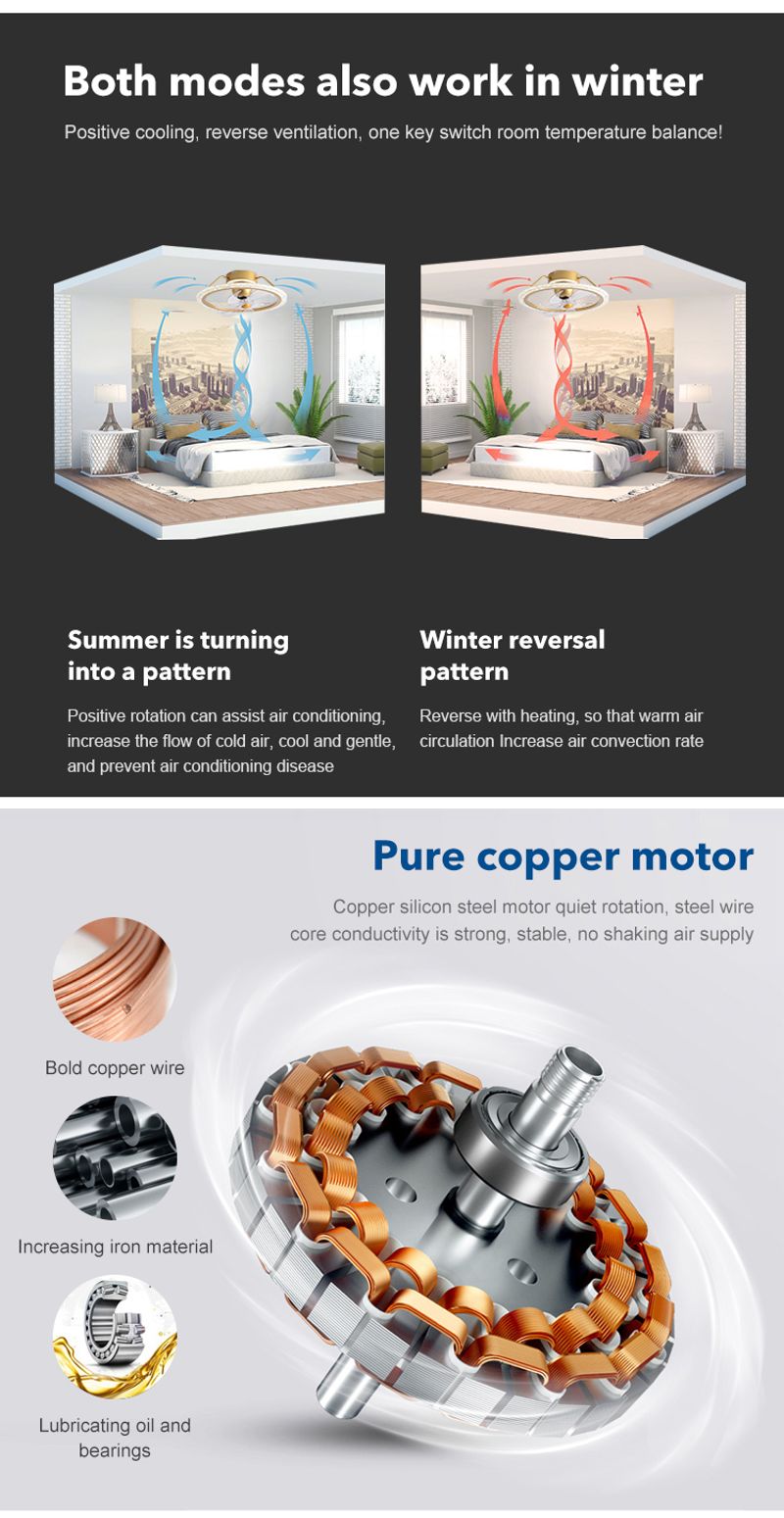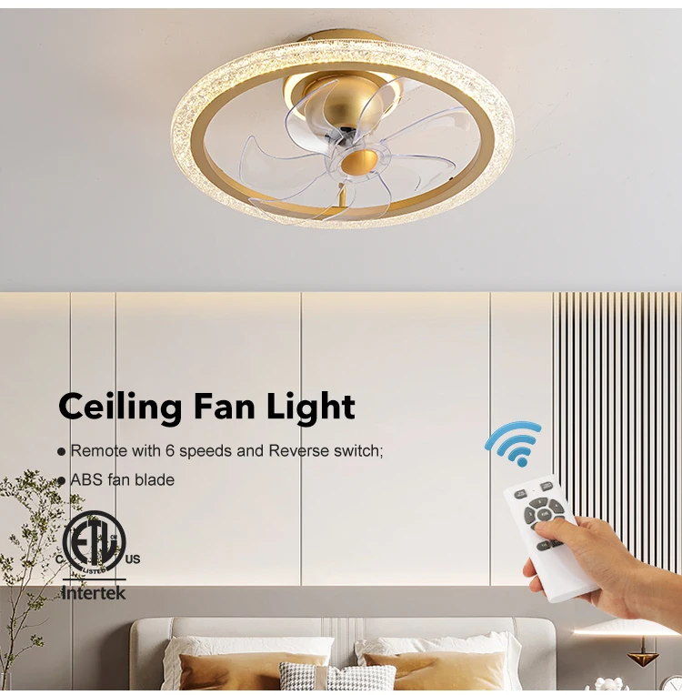Hot Sale 19.6 Inch Bedroom Decorative Pure Copper DC Motor Remote Control Led Ceiling Fan With Light