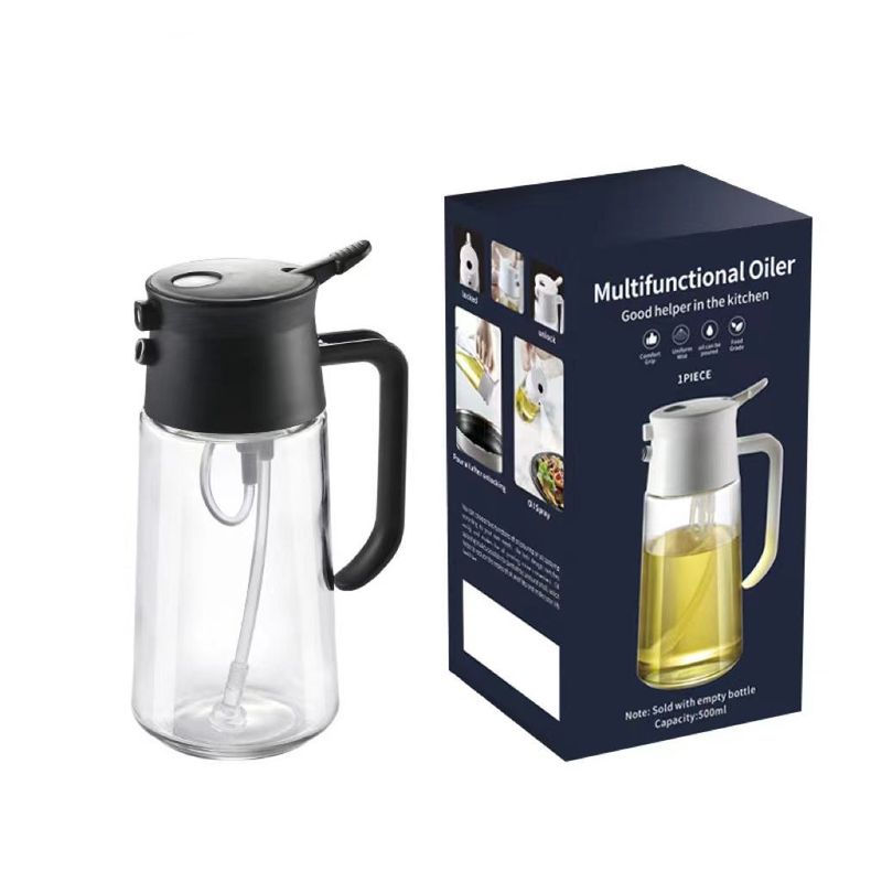 Household Kitchen 2 in 1 Glass Olive Oil Sprayer Bottle with Pouring Spout Grill BBQ 2024 New Design Custom Logo Label for Party