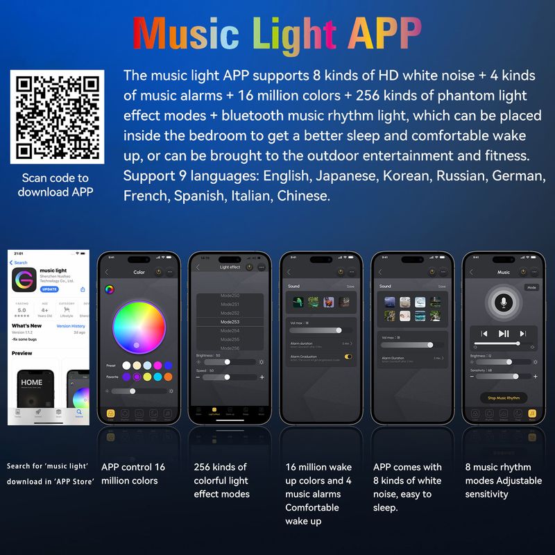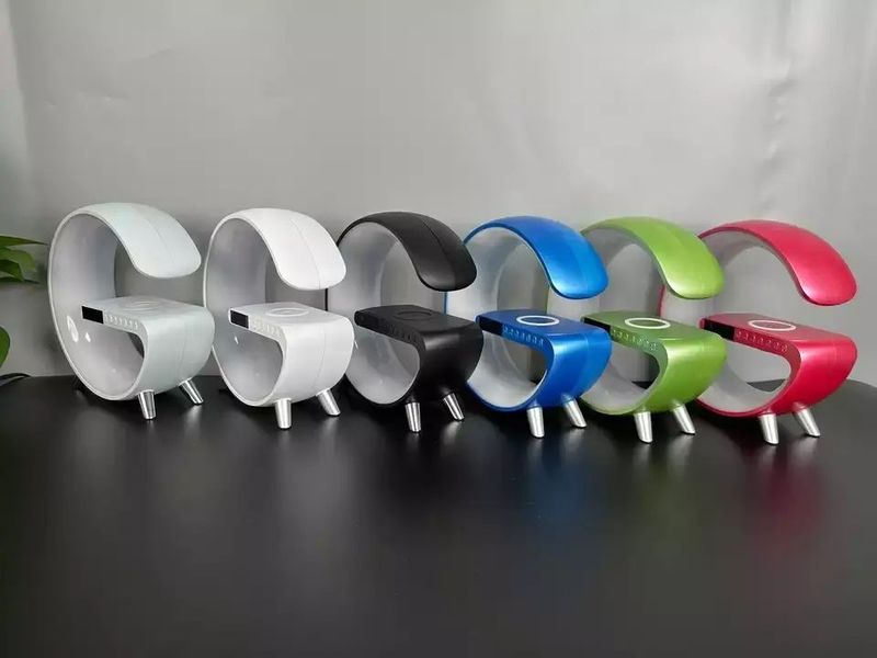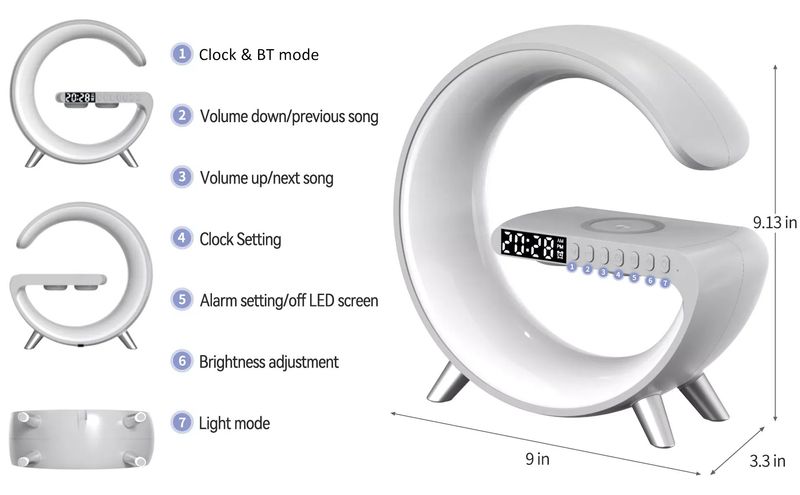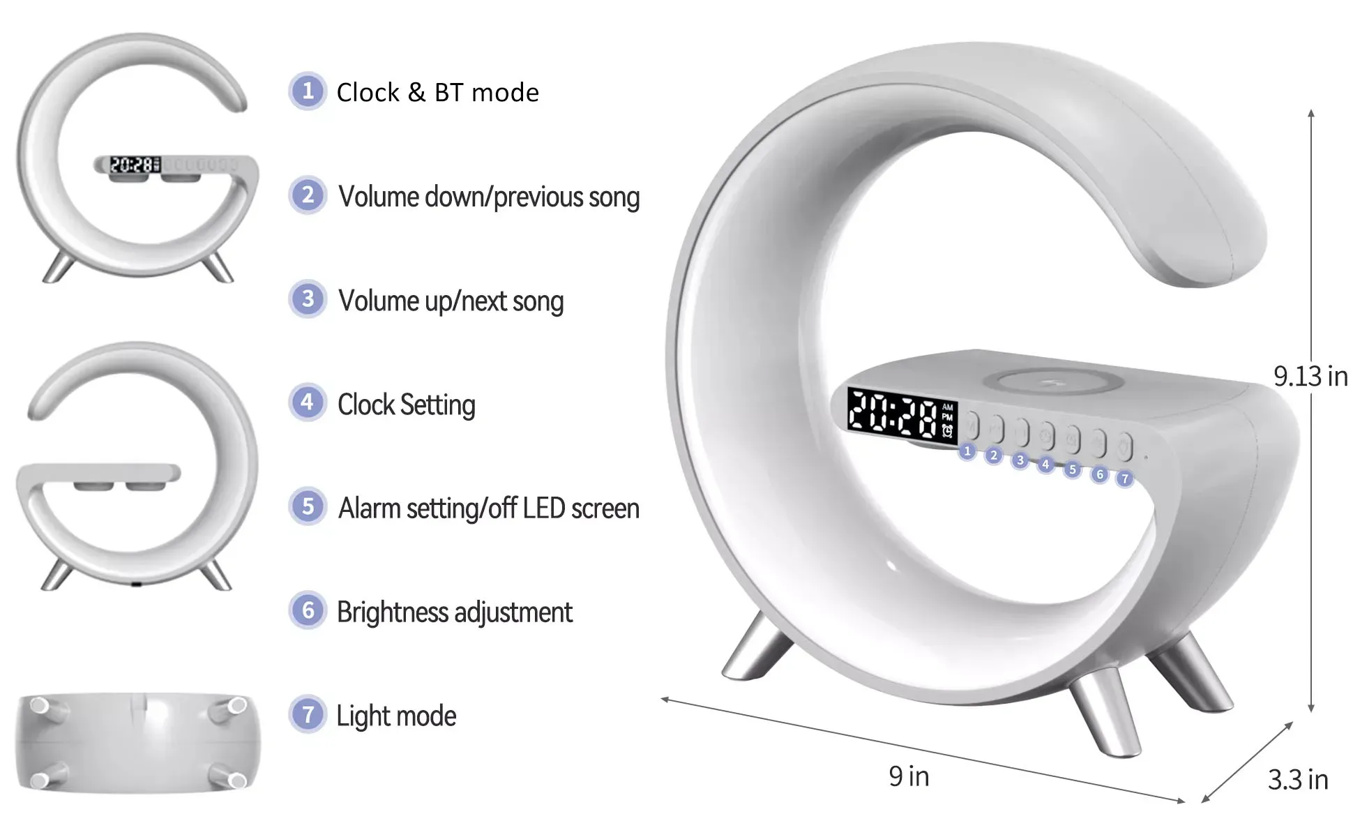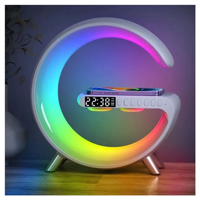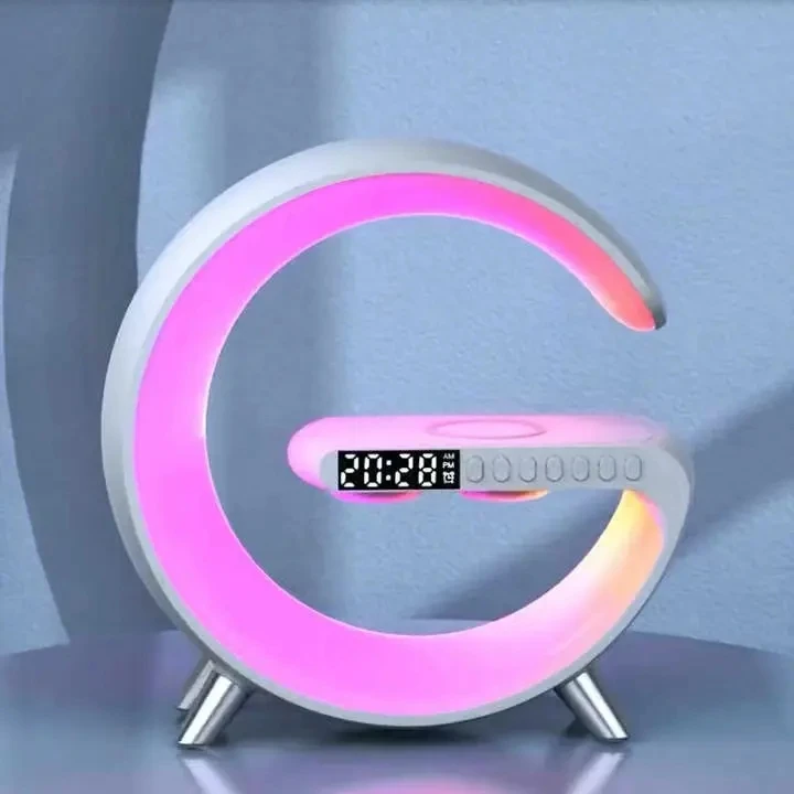 Multi-Functions New Wake Up Light G-shape Led Night Light Peaker Music Wireless Charger With Alarm Clock LED Light