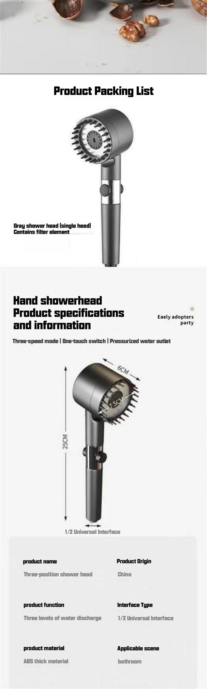 Shower head Powerful booster Handheld shower head Booster shower